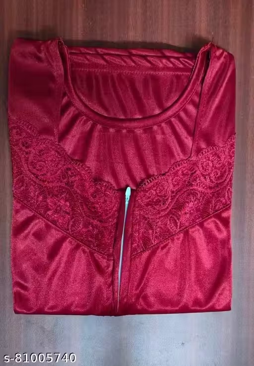 Private Label Satin Nighty Half Sleeve Marron Color For Women