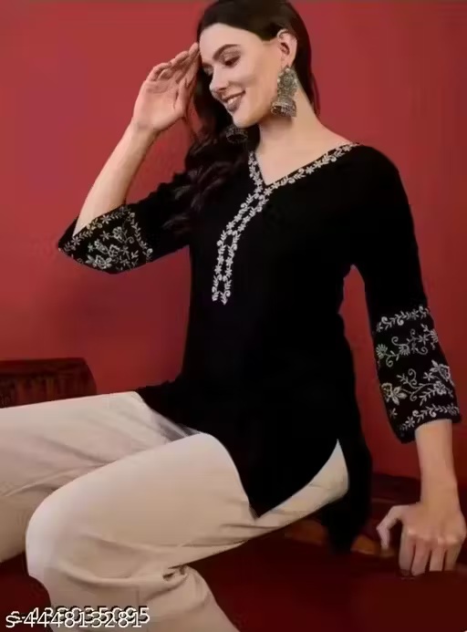 Private Label Short Black Embroidery kurta For Women XL Size