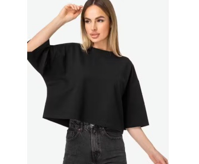 Private Label SolidHalf Sleeve Black Color Crop Top T Shirt Casual Round Neck Drop Down Shoulder Loose Fit Cute Tees for Women s and Girls Size XL
