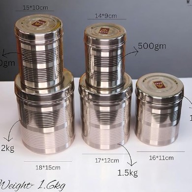 Private Label Stainless Steel kitchen Containers set 5PCS Dabba set 500ml to 2kg For storage Long Lasting Use