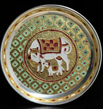 Private Label Stainless Steel Pichwai Meenakari Pooja Plate 7 inches