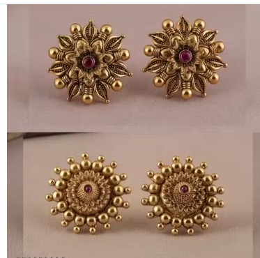 Private Label Stunning red stone antique gold stud earring PACK OF 2