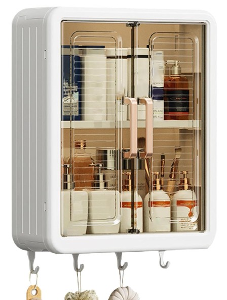 Private Label Wall Mounted Plastic Storage Rack for Kitchen Multipurpose Organizer with Doors and Shelves Durable Space Saving Storage Box White