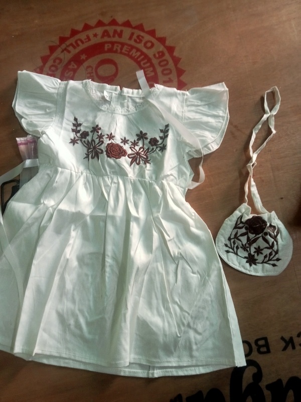 Private Label White Cotton Baby Girl Dress with Floral Embroidery 16 Size