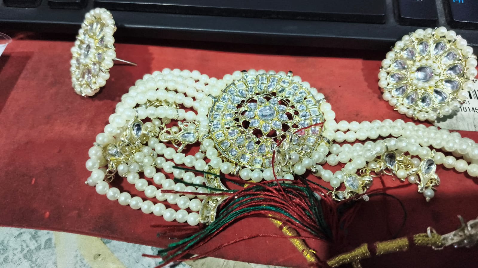 Private Label White Moti With Stone Designing Choker With Earrings Set