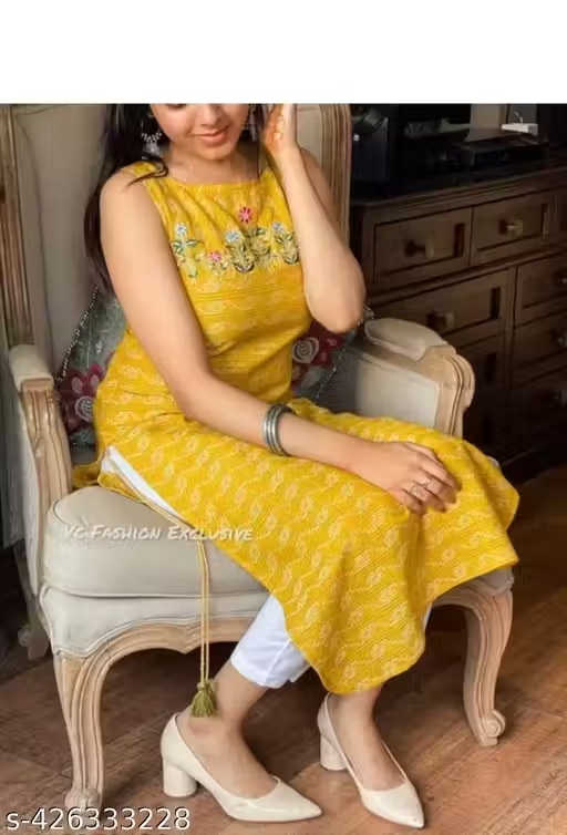 Private Label women kurti Yellow Colour Free Size