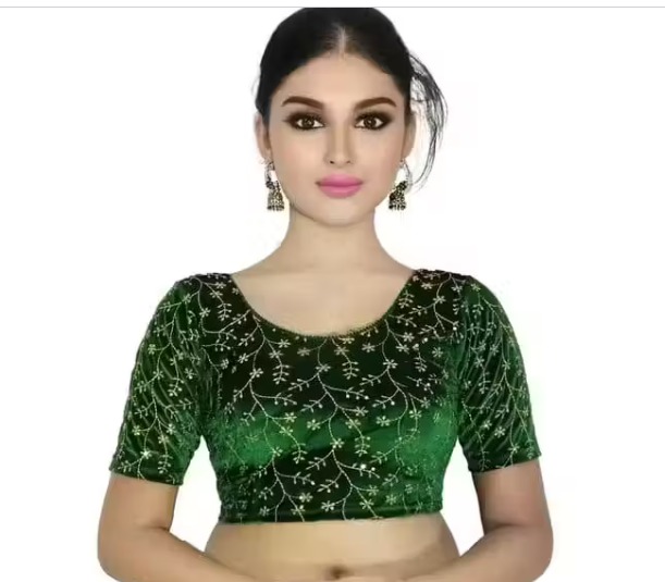 Private Label Women s Readymade Strechble Velvet Embroidered Blouse green colour free size