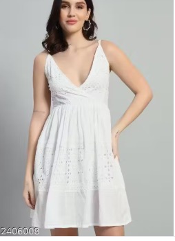 Private Label Women Schiffli Tiered Dress WHITE COLOUR FREE SIZE