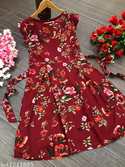 Private Label Women Trendy Onepiece Midi Dres With Flower Desgine Kids Girls Free Size