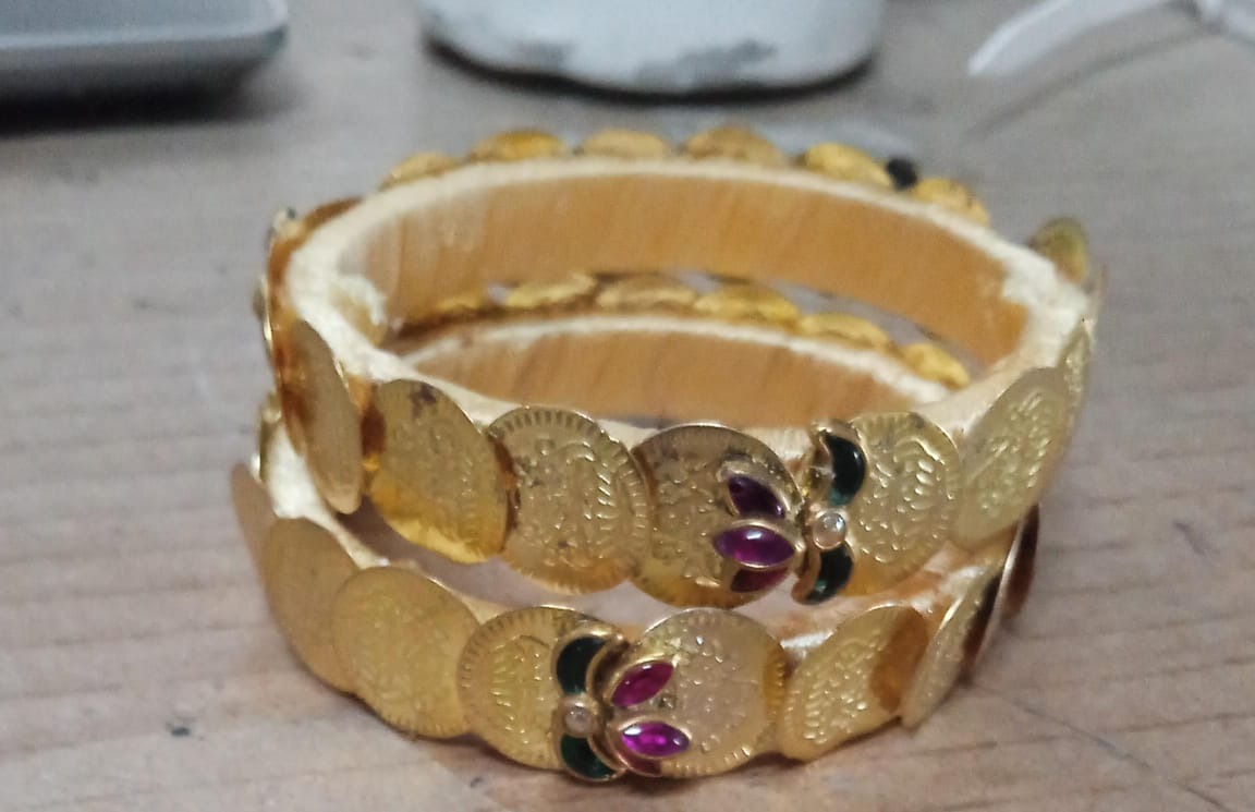 Private Lable Antique Golden Bangles Sku 3076 D2 gold colour set of 2