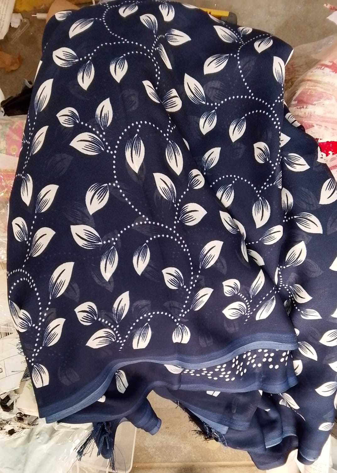 Private Lable Elegant Navy Blue Floral Print Saree Lightweight running blouse