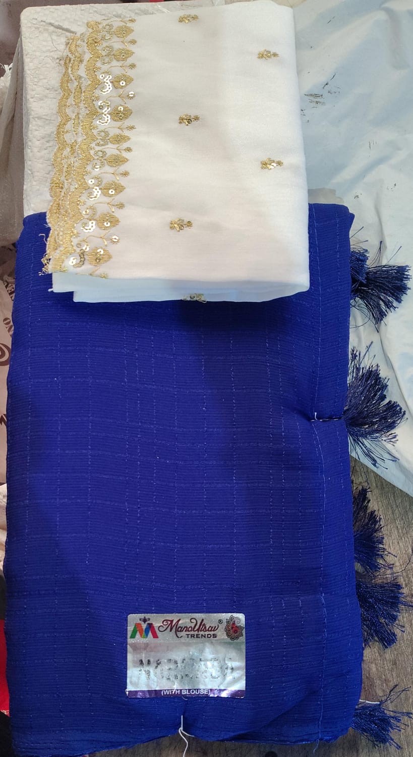 Private Lable Embellished Bollywood Chiffon Saree Blue white blouse