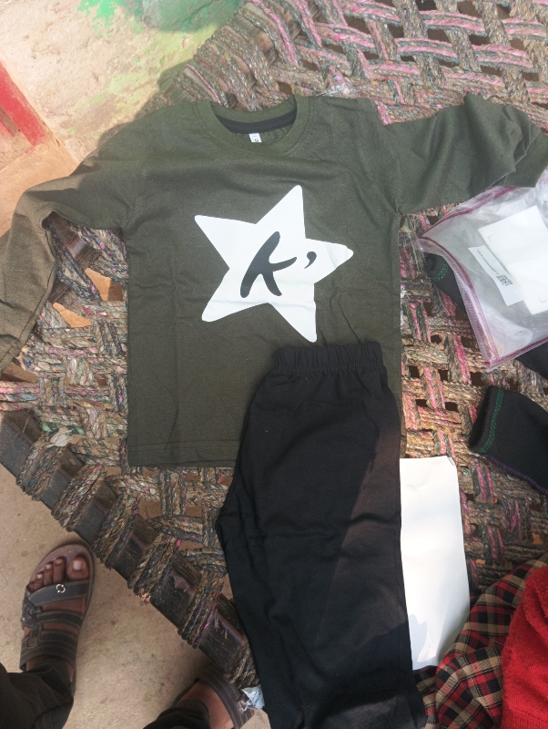 Private Lable Kids unisex printed full Sleeves Cotton T shirt With Pant Set green and black colour size 2 years