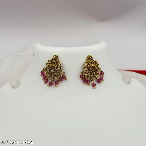 Private Lable Laxmi Studs Earrings With Pink Crystal Beads For Women s And Girls