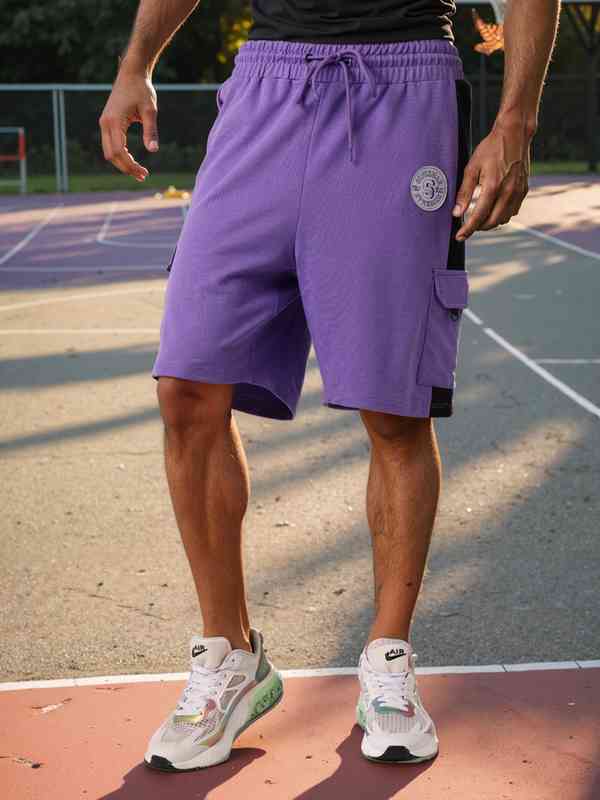 Private Lable Mens Regular Cotton Purple Shorts Size M