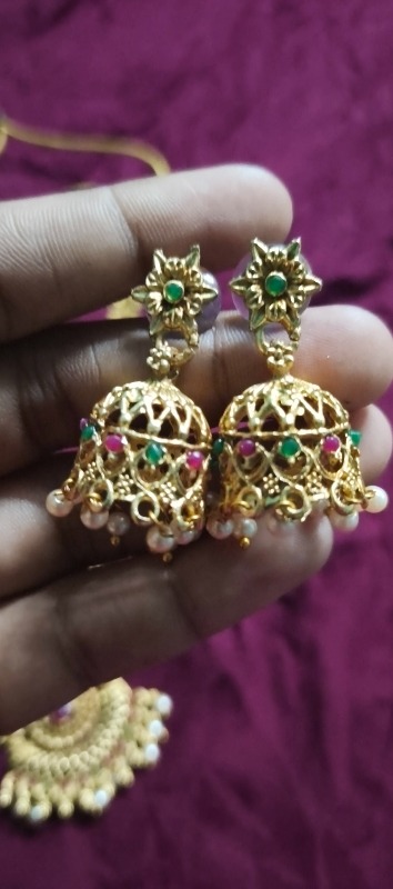 Private Lable PREMIUM QUALITY MATTE FINISHED AD STONE PEARL JHUMKA for womens