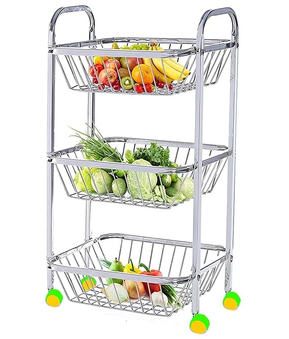 Private Lable Stainless Steel Fruit Vegetable 3 Layer Stand Kitchen Trolley Vegetable Basket