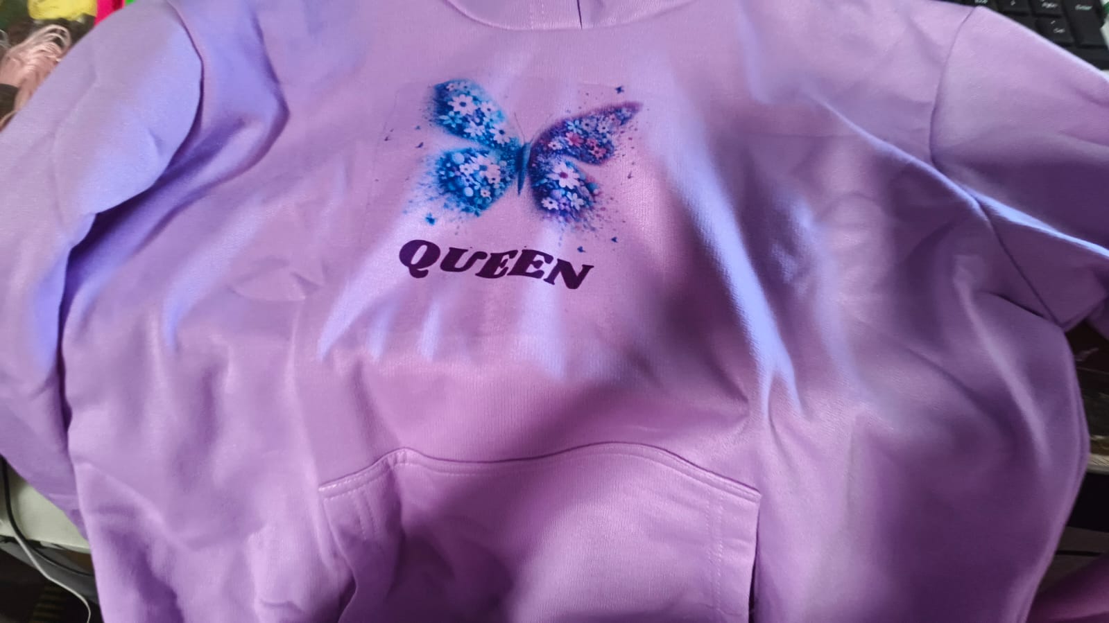 Private Lable Trendy Butterfly Pink Hoodie Fleece For Girls purple size L