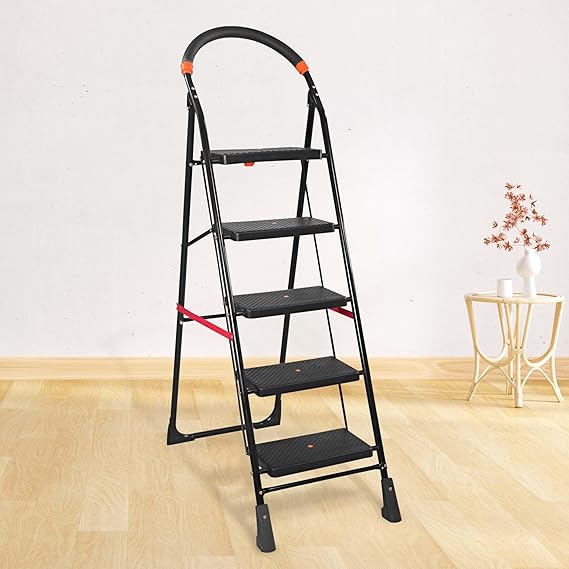 Private Lable Trendy Cameo 5 Step Heavy Duty Foldable Step Ladder with AntiSkid Shoes black colour