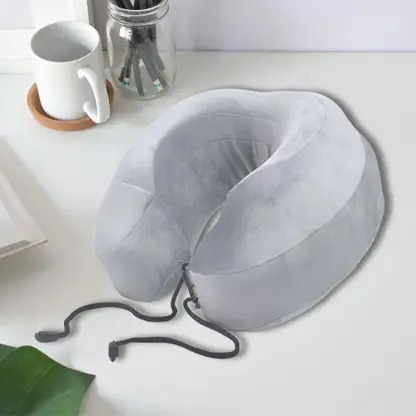 Private Lable Ultra Soft Velvet Cover Memmory Foam Neck Pillow Grey Color