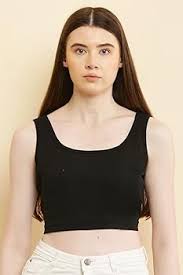 Private Lable Women s Girls Solid Cotton Ribbed Square Neck Sleevless Crop Tank Tops Black Colour Size XL
