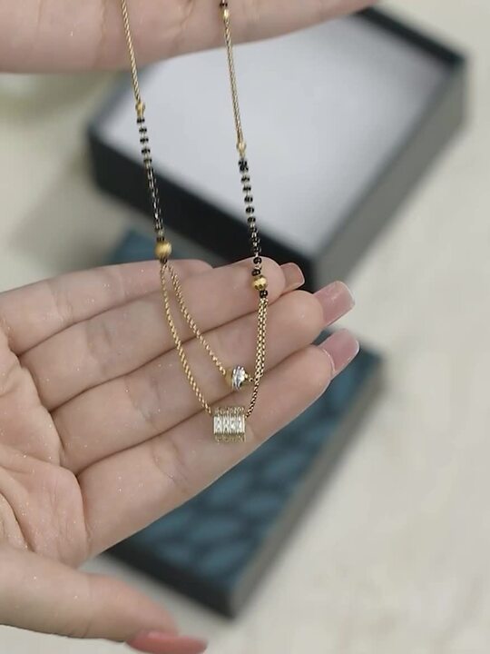 Priyaasi Black GoldPlated AdStudded Beaded Layered Mangalsutra