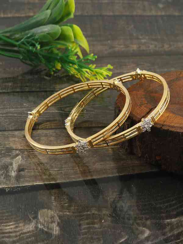 prjyaasi Set Of 2 GoldPlated SilverPlated White StoneStudded Bangles SIZE 3 POINT 1