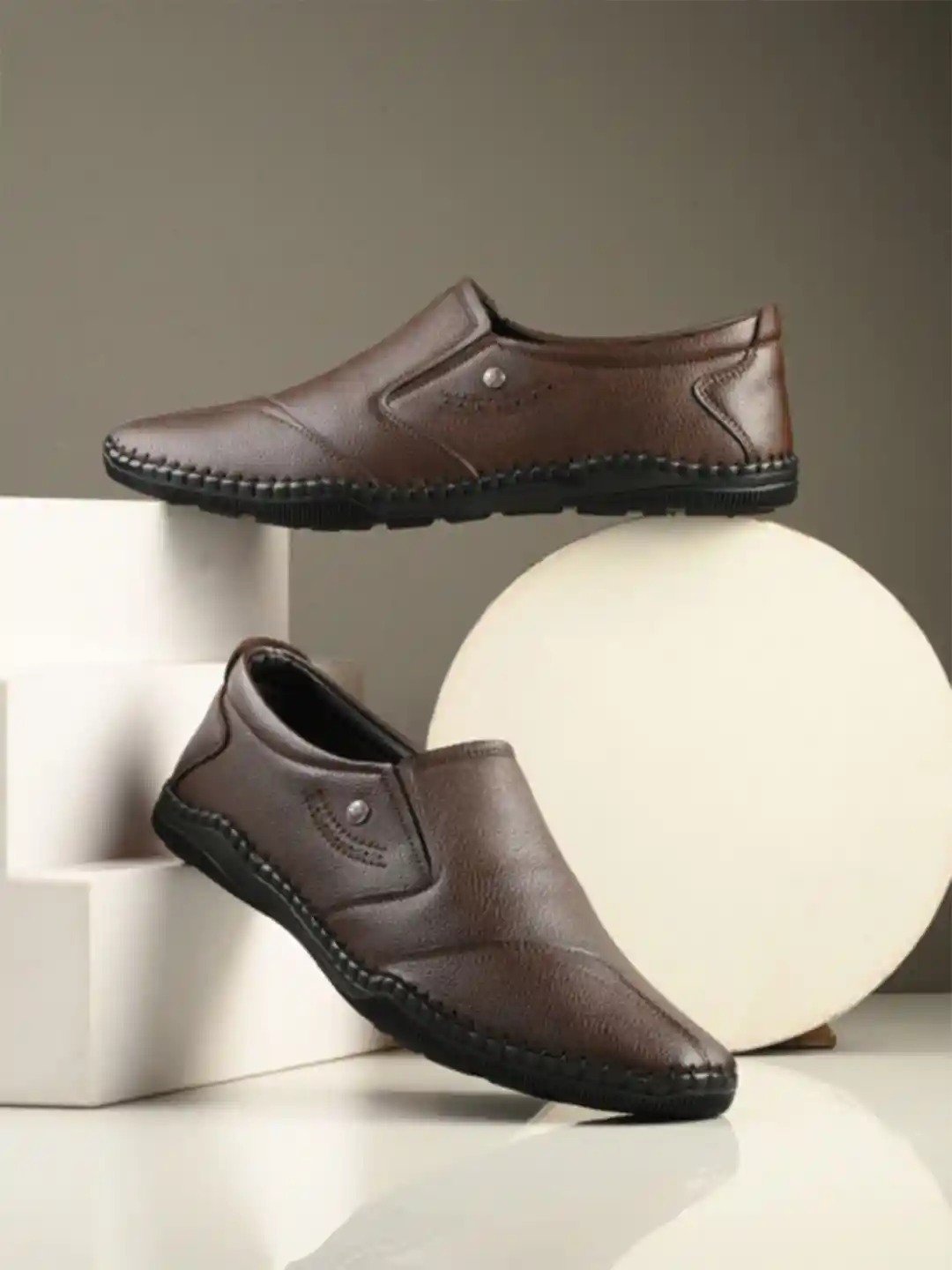 Provogue Chocolate Brown Leather Men Leather Formal Slip Ons For Mens Size 43