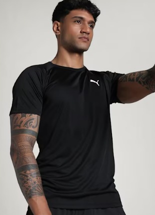 Puma Solid Men Crew Neck Black T Shirt Size M