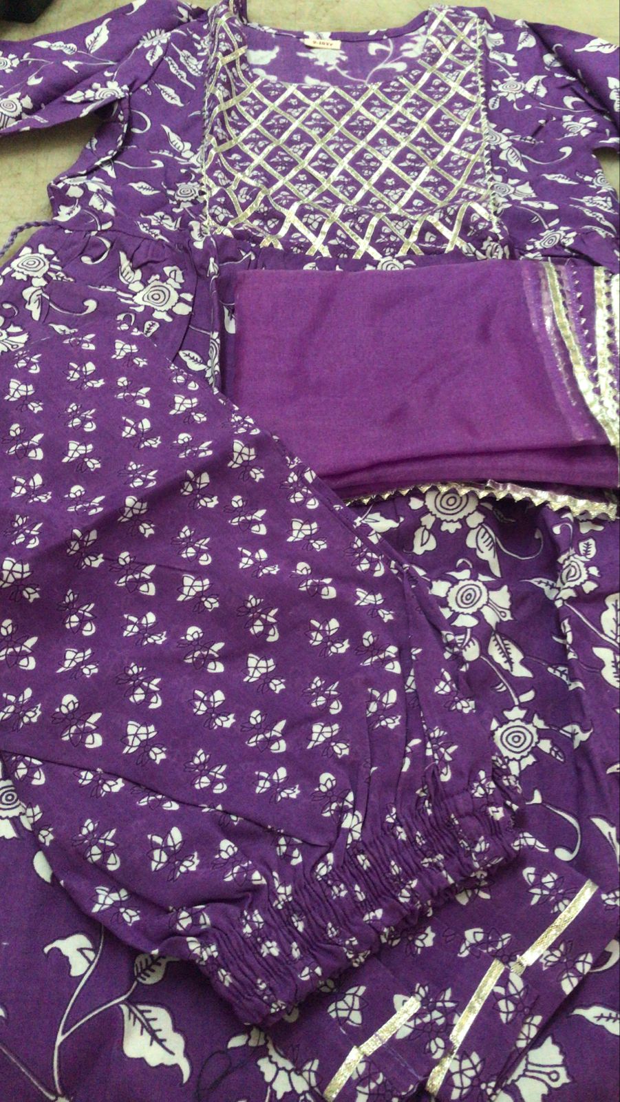 Pure Cotton Kurti With Pant Dupatta Set For Kid Girls Purple Size 9 To 10 Yrs