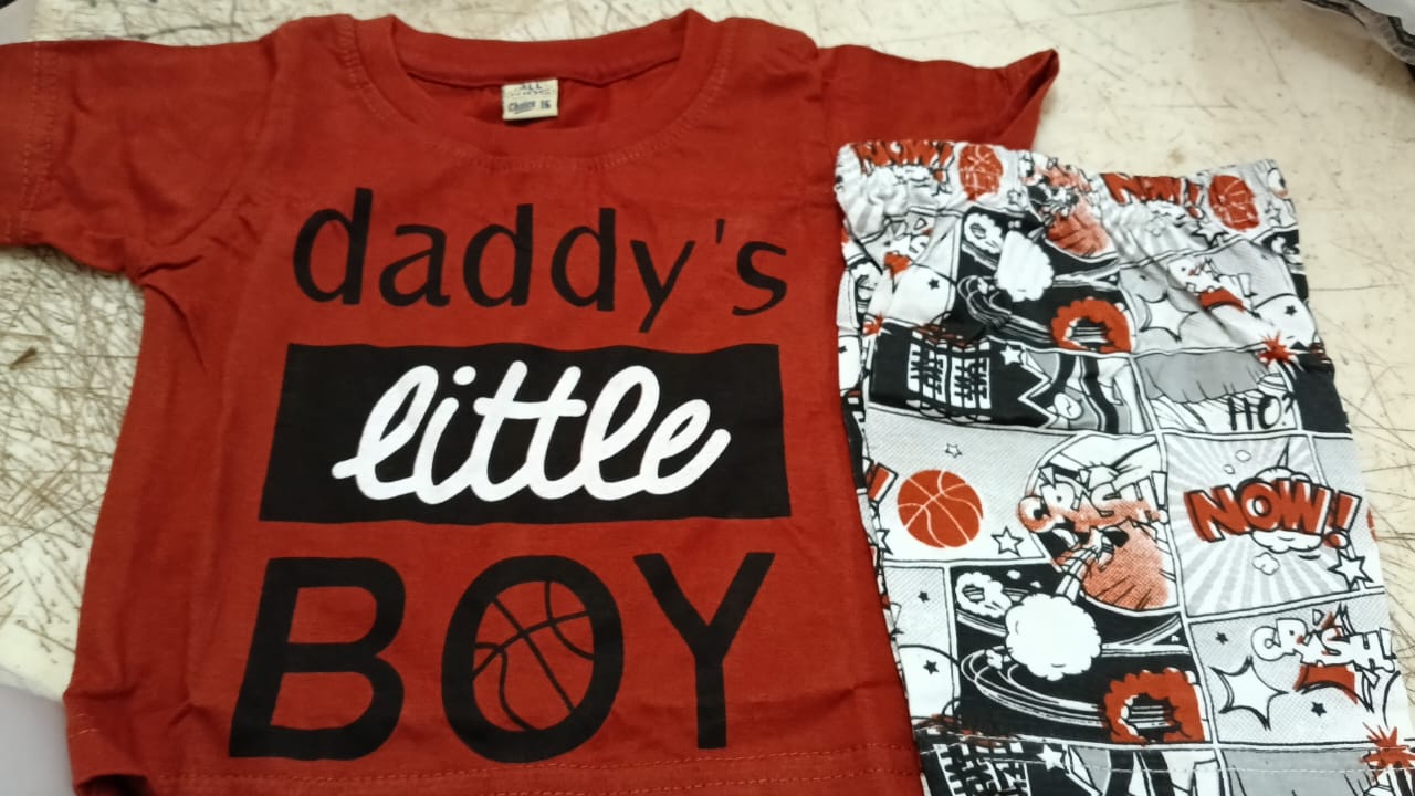Pure Cotton T Shirt Wih Short Set For Kid Boys Brown White Size 15