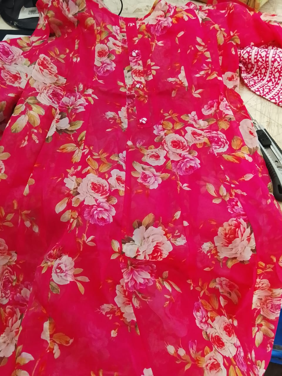 Pure Soft Fox Georgette Floral Print Fabric Fully Flair Dress Size 3Xl