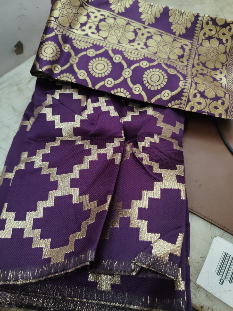 Purple And Gold Colour Saree With Unstitched Blouse Fabric