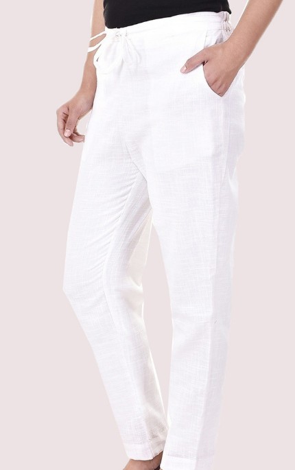 Qashida White Cotton Slub Solid Women Pant size l white colour