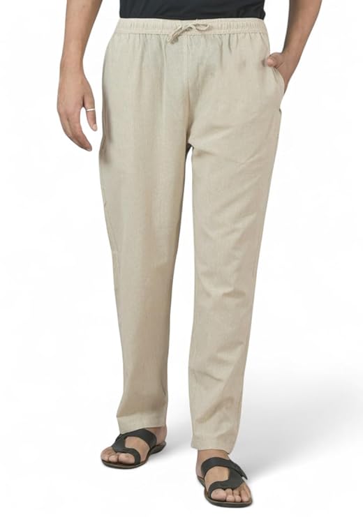 Qasida Mens Formal Skin Color Cottonlinen Trousers Waist With Drawstring Formal Lounge Wear Size S