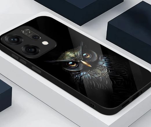 qwerty cases Oppo Reno 14 5G Premium Acrylic Shockproof Glass Back Case Midnight Owl