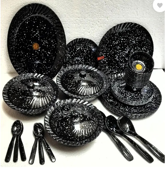 Radhe Crockery Pack Of 36 Melamin Black Marvel Dinner Set Black