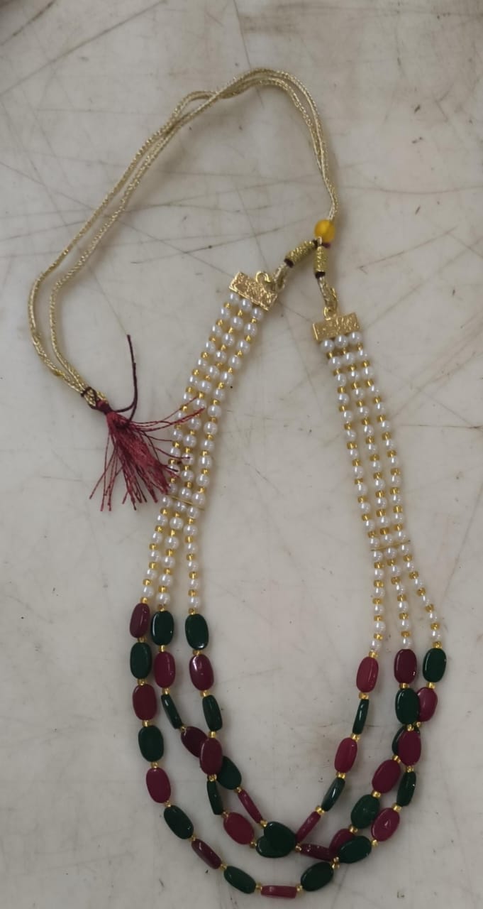 Rajasthni Women Girl Multi Wedding Mala Three String Pearl Necklace