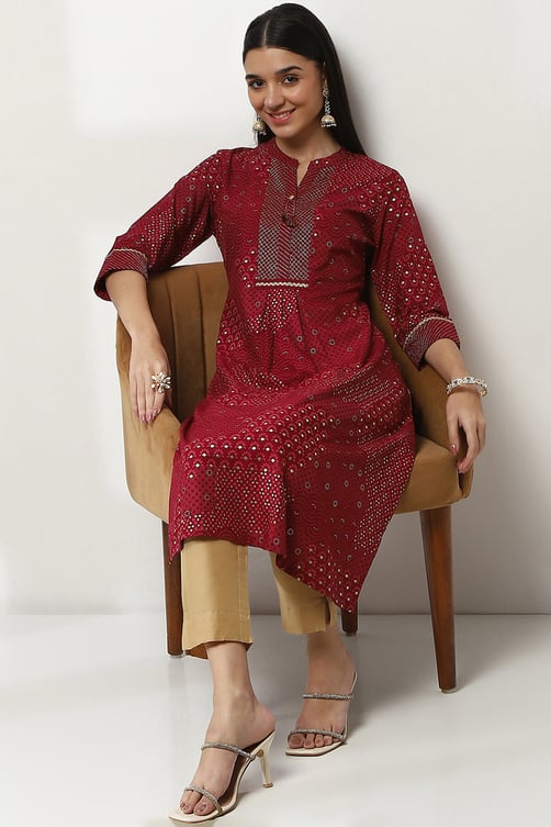 Rangriti cherry Red Viscose Printed Straight Kurta for women size 42