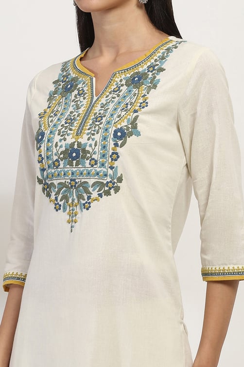 Rangriti OffWhite Cotton Blend Straight Kurta Set for womens size 42