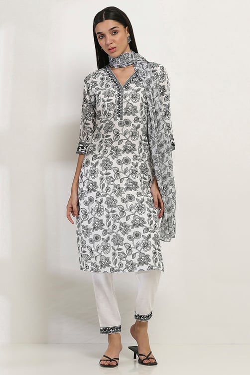 Rangriti White and Black Printed Straight Suit Set for womens size 36
