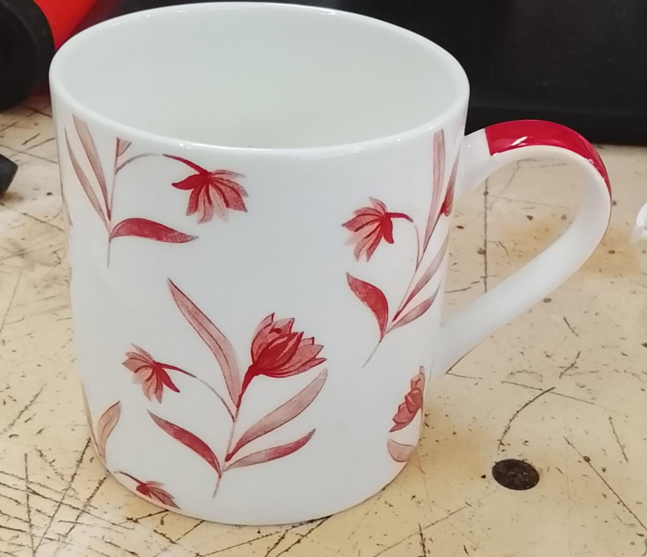 Red And White Floral Design Tea Cup