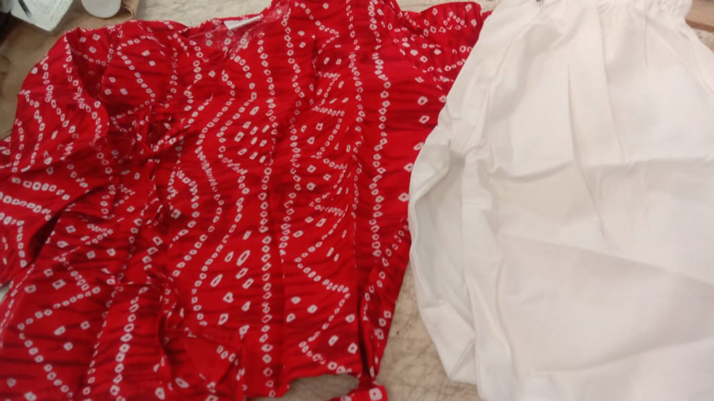 Red And White Gujarati Printed Kurta And Pajama For Kids Boys For 3 To 6 Month