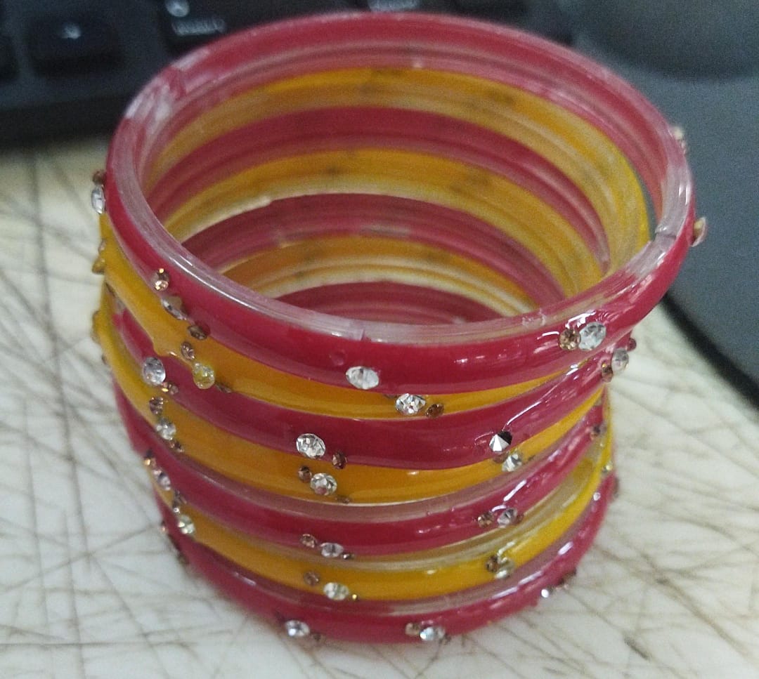 Red And Yellow Colour Bangles Set Size 2X4 For Women
