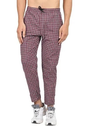 Red Color Cotton Checked Trousers For Men Size Xxl