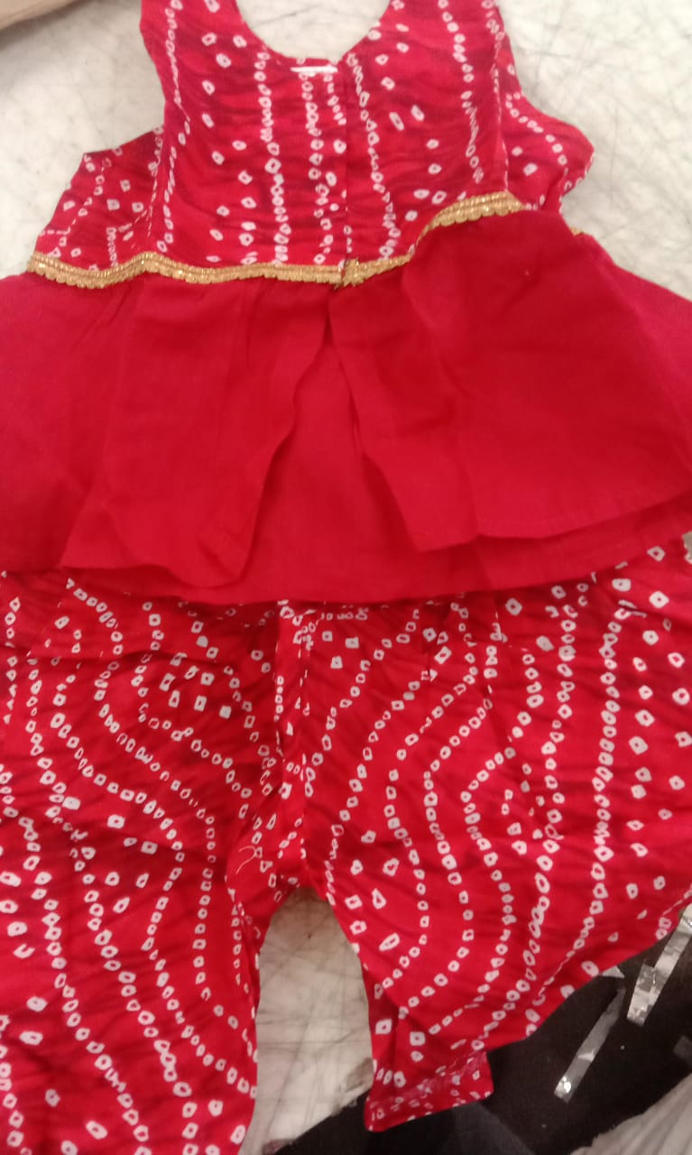 Red Colour Gujarati Print Kurti And Pant For Kids Girls For 3 To 6 Month