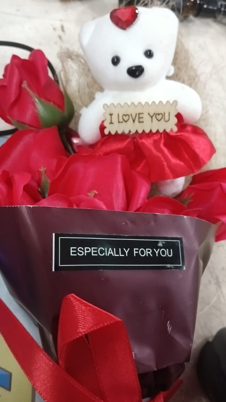 Red Rose Bouquet With Love Teddy Bear For Valentine Artificial Flower Valentine Gift For Girlfriend