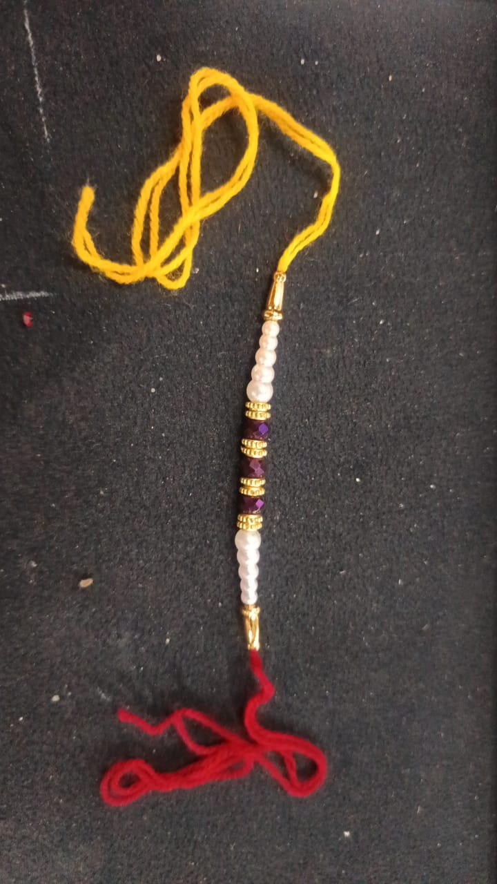 Red Yellow Rakhi White And Purple Stone