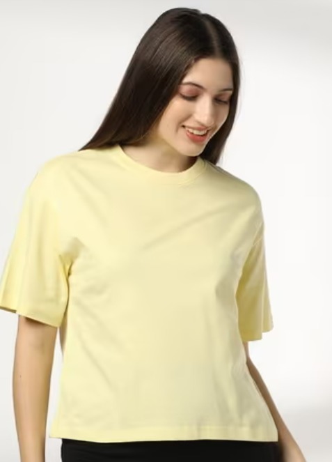 Rio Basic Women Boxy Fit Crew Neck T Shirt Yellow Size Xl