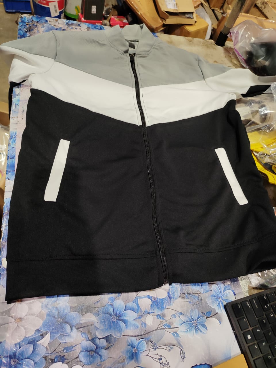 Risemax Mens Colorblock Lycra Blend Full Sleeve Casual Jacket greywhite l size